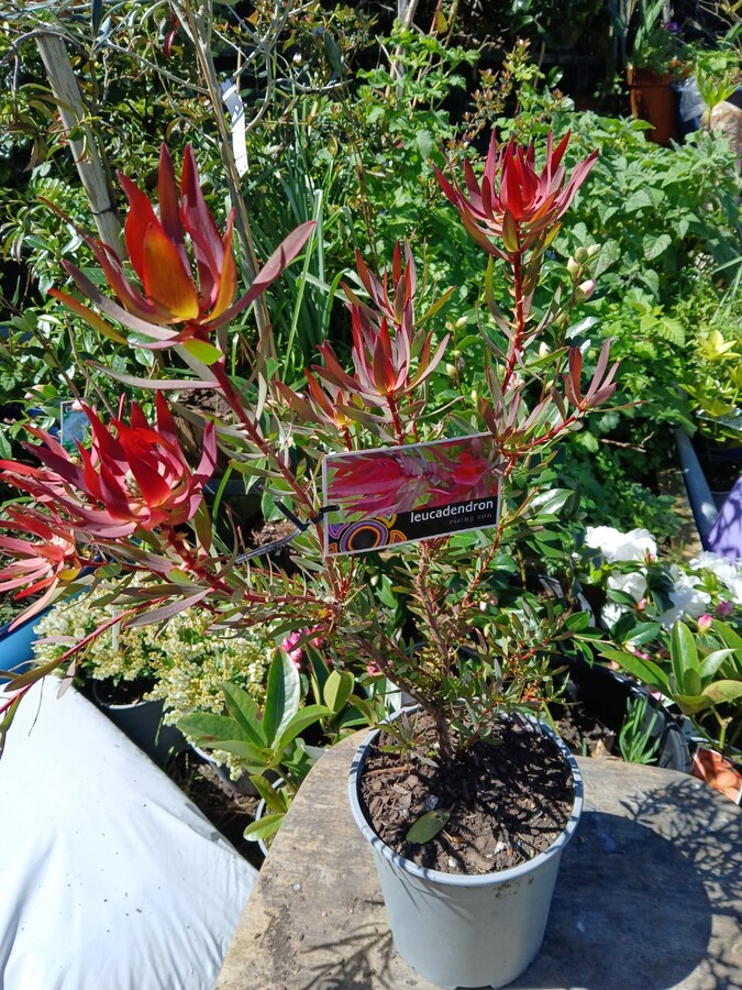 Prefers acidic well-drained soil in a sunny spot away from harsh frosts. Please avoid using phosphate-based artificial fertilisers or anything high in Nitrogen. Leucadendrons will not appreciate this.